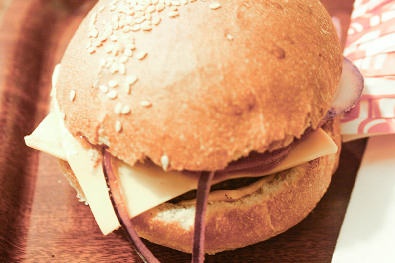 Vous pouvez aussi goûter des hots dogs végétariens ou vegan, ainsi que des quiches. Je n’ai pas testé je ne peux pas m’empêcher de prendre un burger !